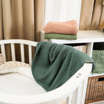 Pletene dekice izrađene su od 100% organskog pamuka, što ih čini izuzetno mekanima, prozračnima i nježnima za osjetljivu dječju kožu.
